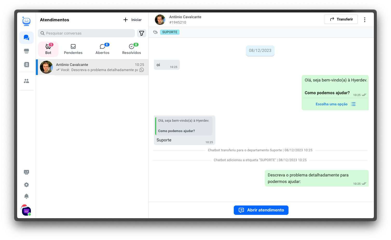 • Abertos: atendimentos que já foram iniciados e estão em andamento, aguardando acompanhamento ou resolução por um atendente humano;