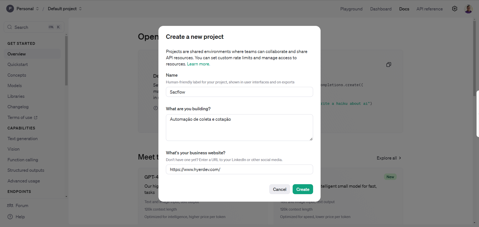 Como criar uma chave API no OpenAI