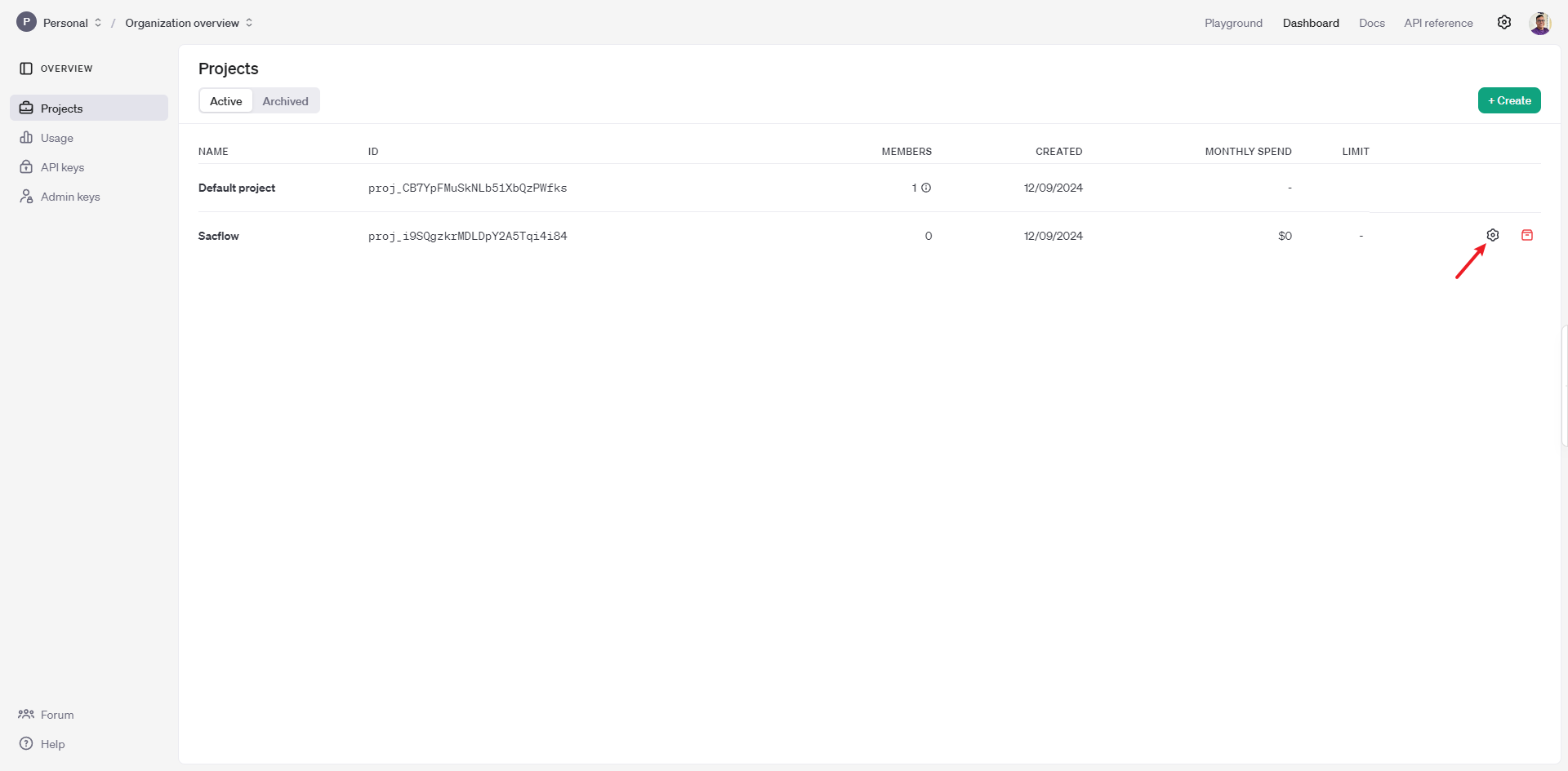 • Clique na engrenagem dentro do projeto Sacflow