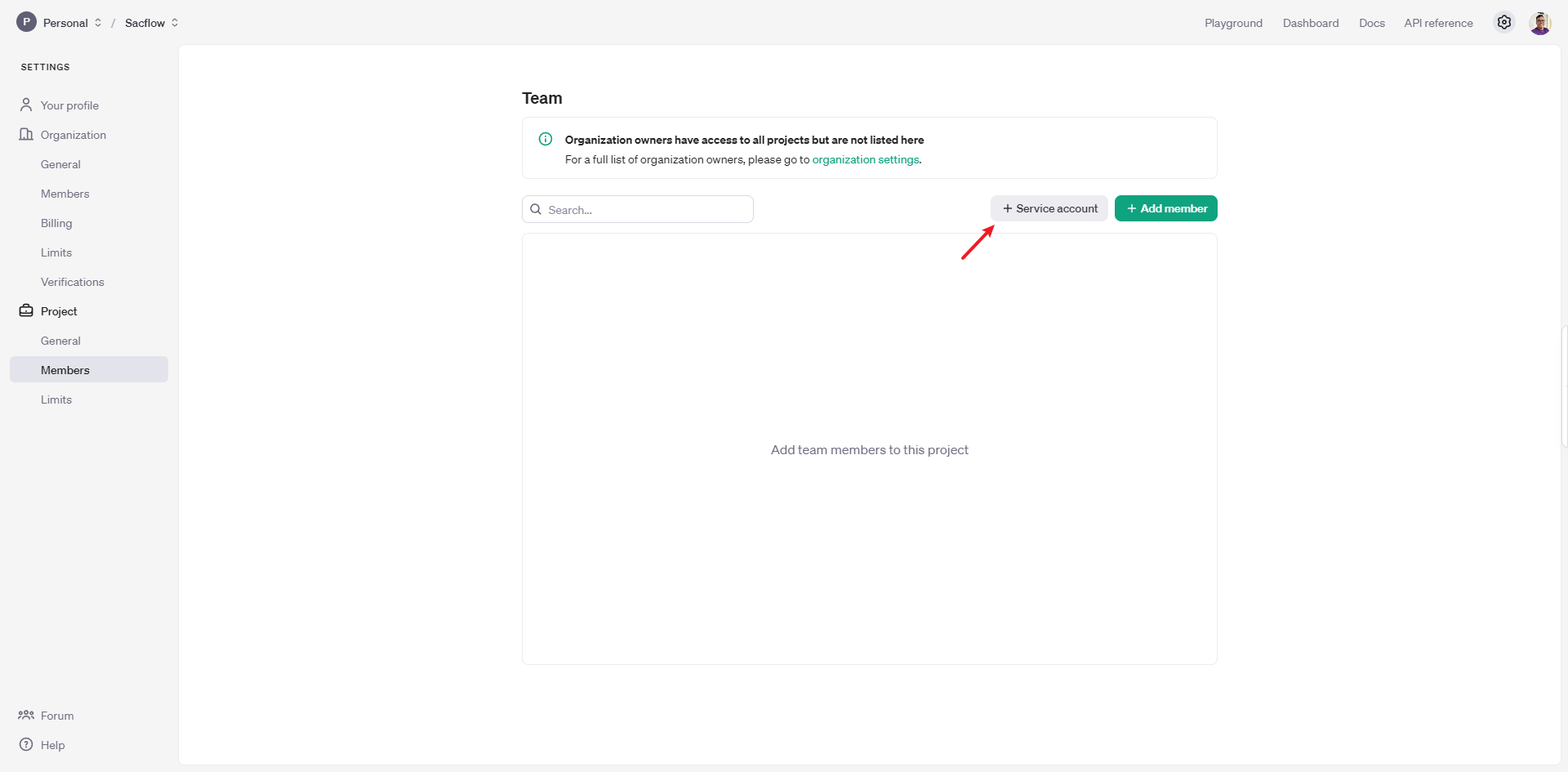 • Clique em "Service Account"