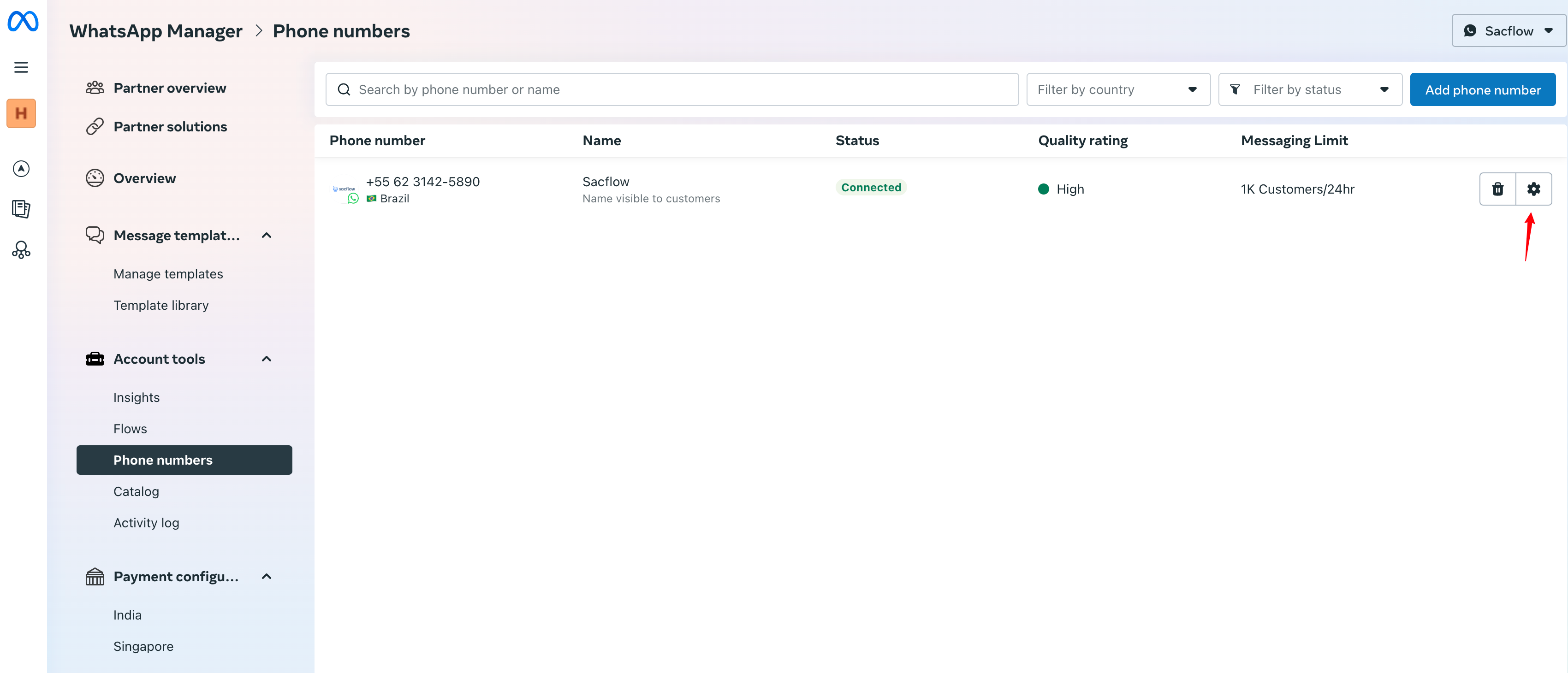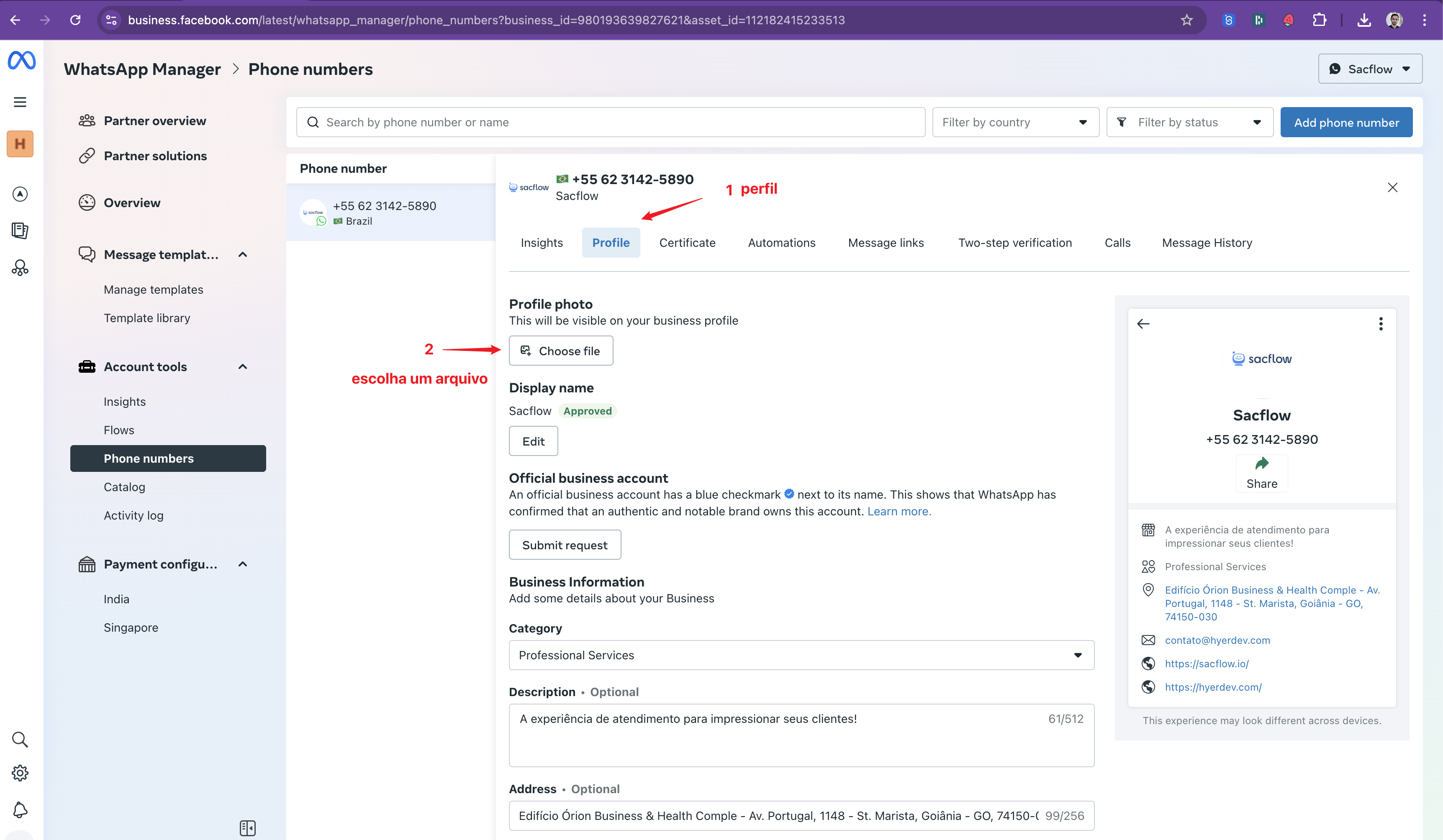 Acesse o link https://business.facebook.com/latest/whatsapp_manager/phone_numbers