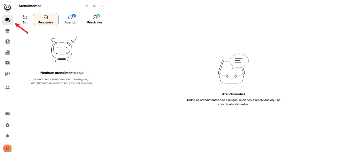 Passo 1: No menu principal do Sacflow, vá até a seção de atendimentos