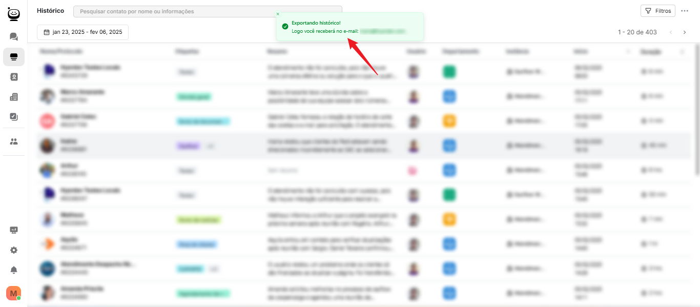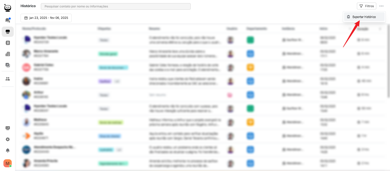 Veja em passos simples como exportar o histórico de atendimentos.