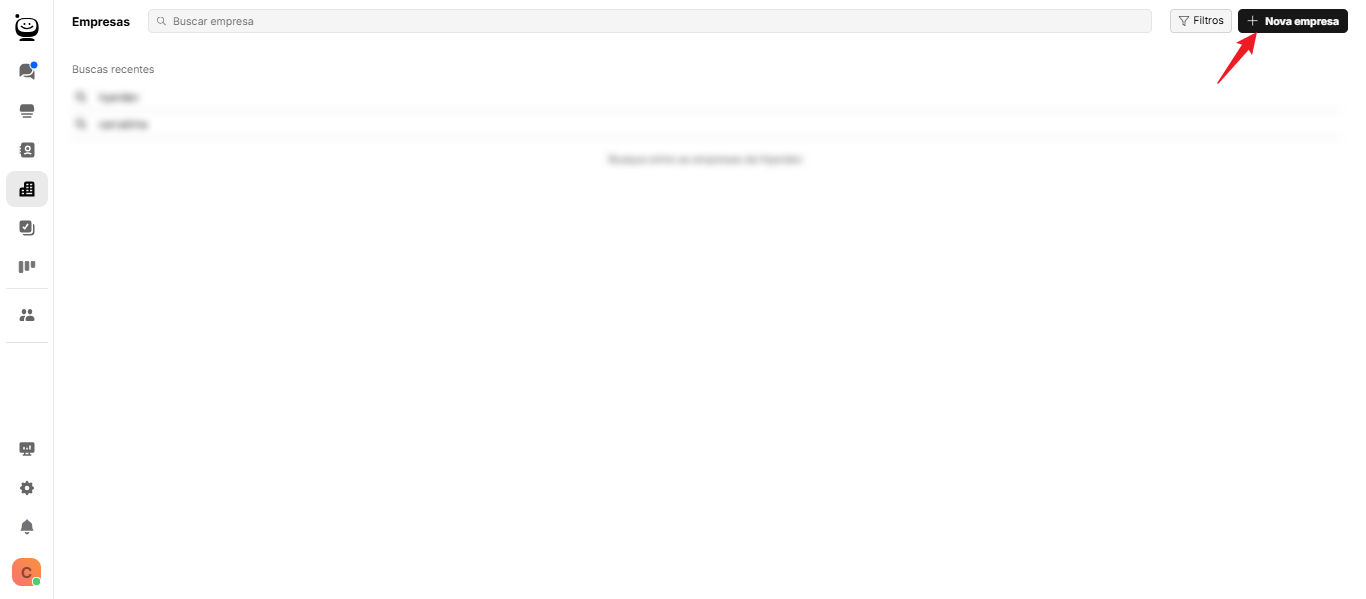 Passo 2: No canto superior direito da tela, clique no botão "+ Nova Empresa"