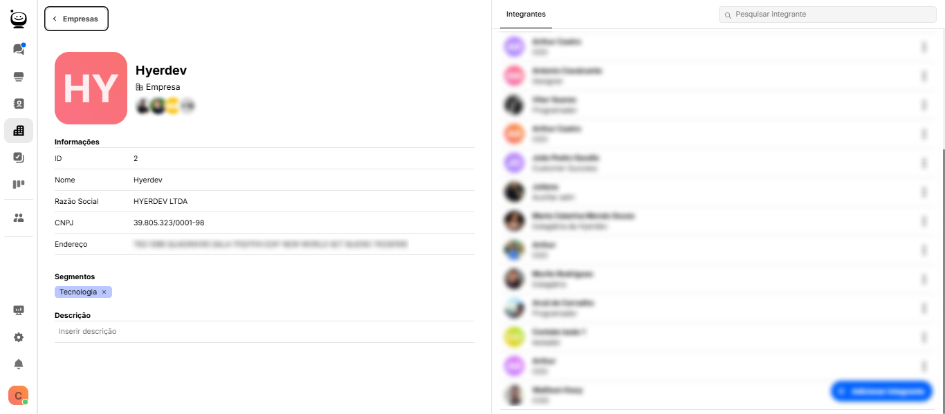 Passo 4: Com a empresa criada, você consegue verificar e adicionar os integrantes que fazem parte dela