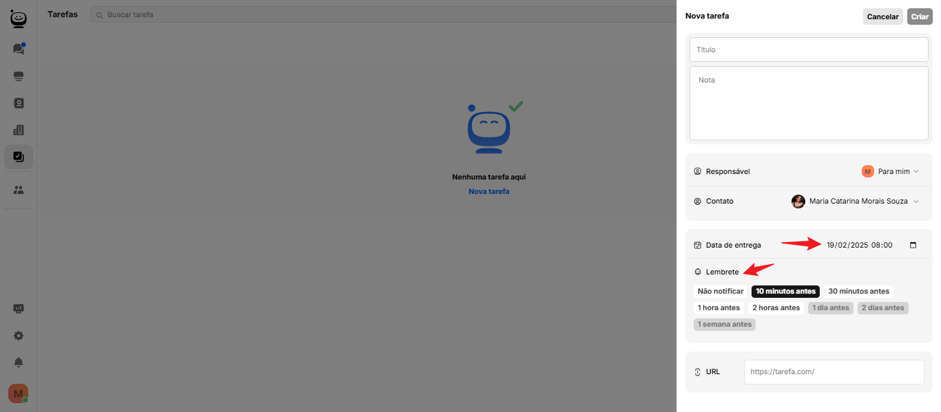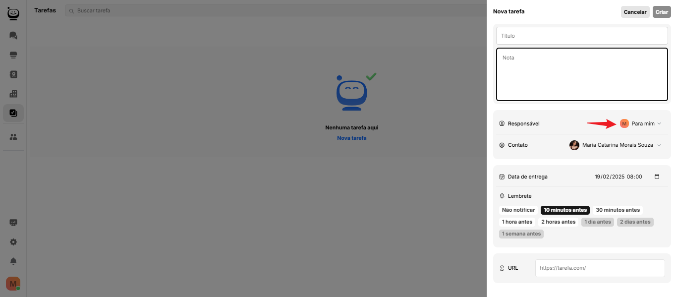 Passo 3: No menu de criação de tarefa, você poderá definir: