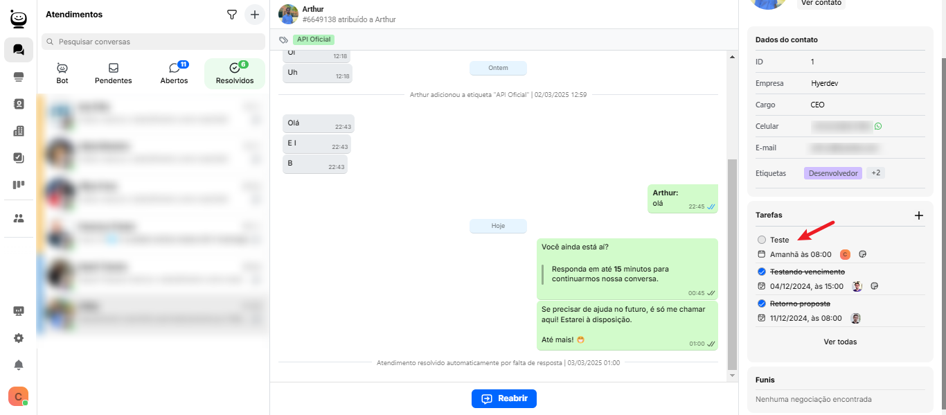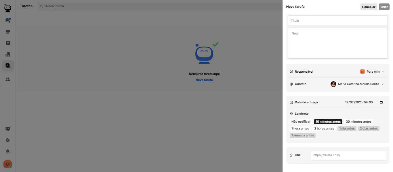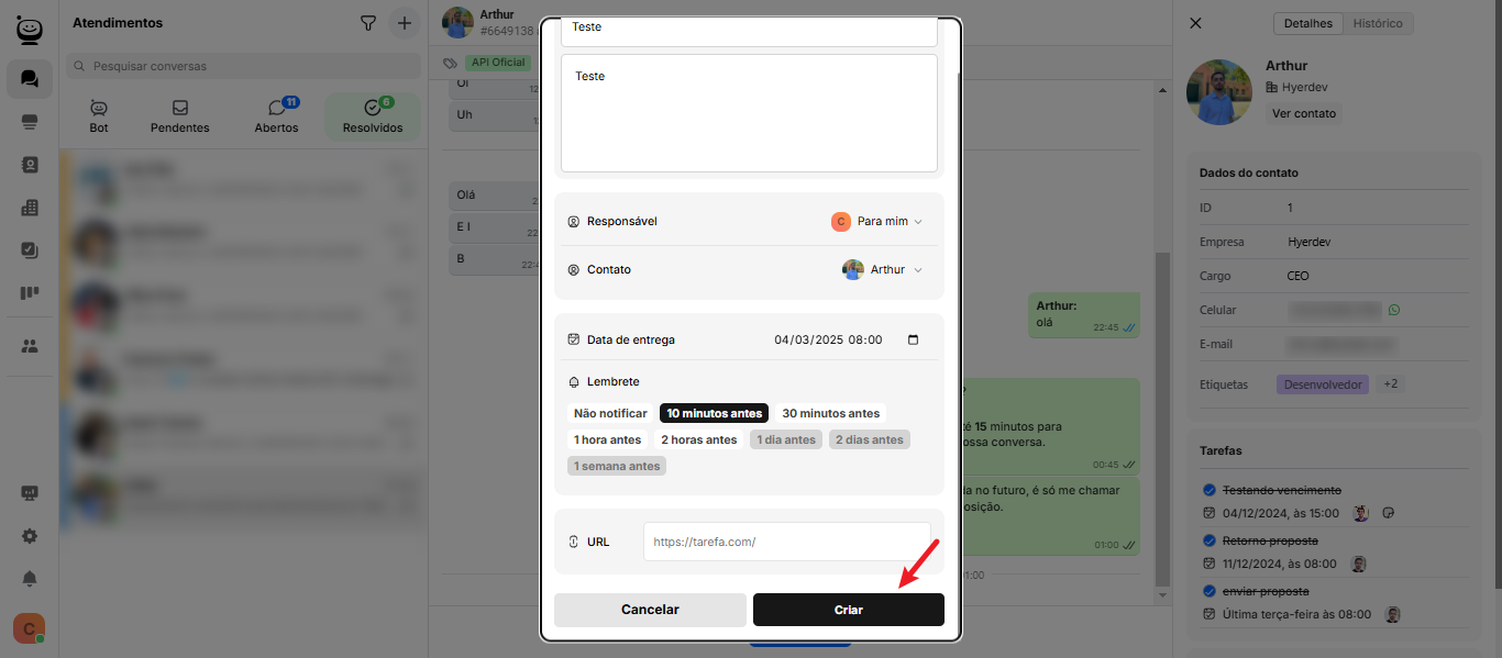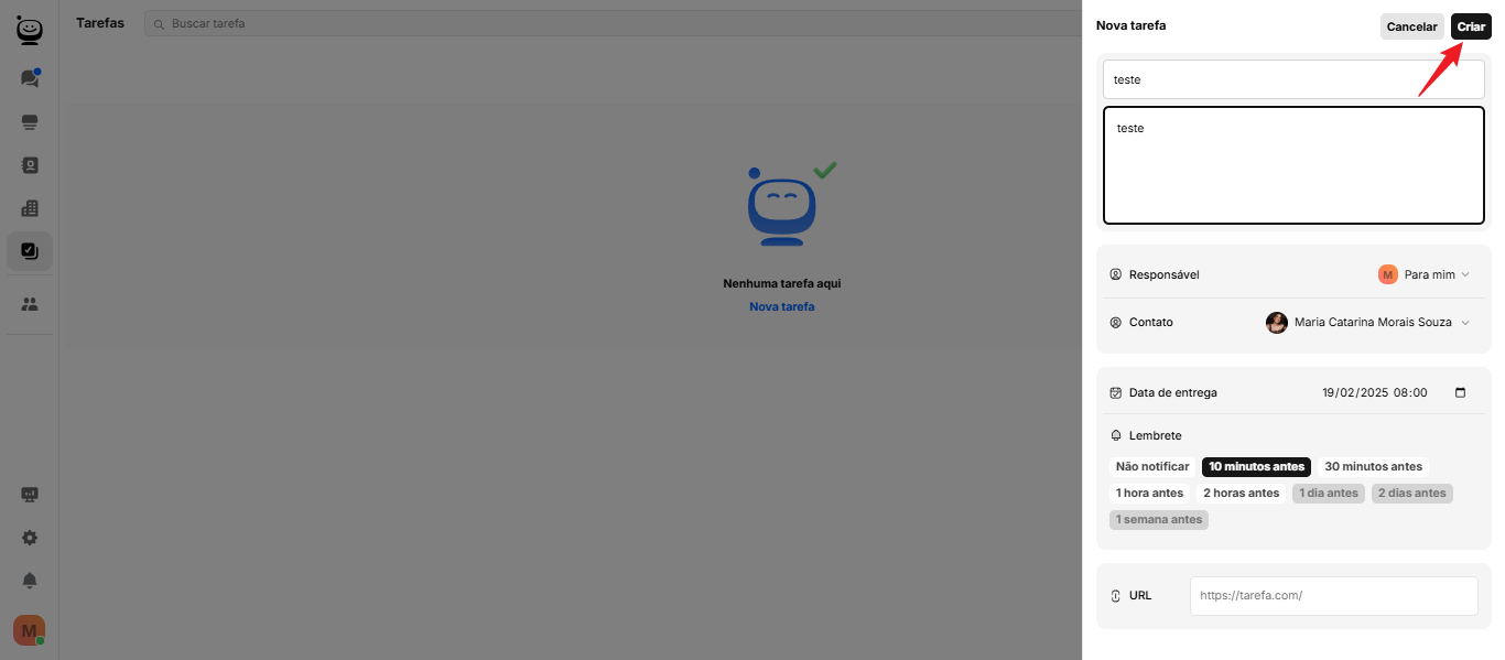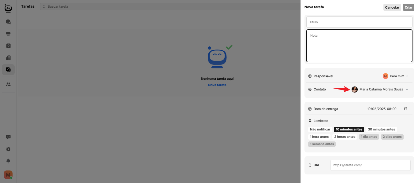 Siga o passo a passo abaixo para criar uma nova tarefa diretamente vinculada a um contato: