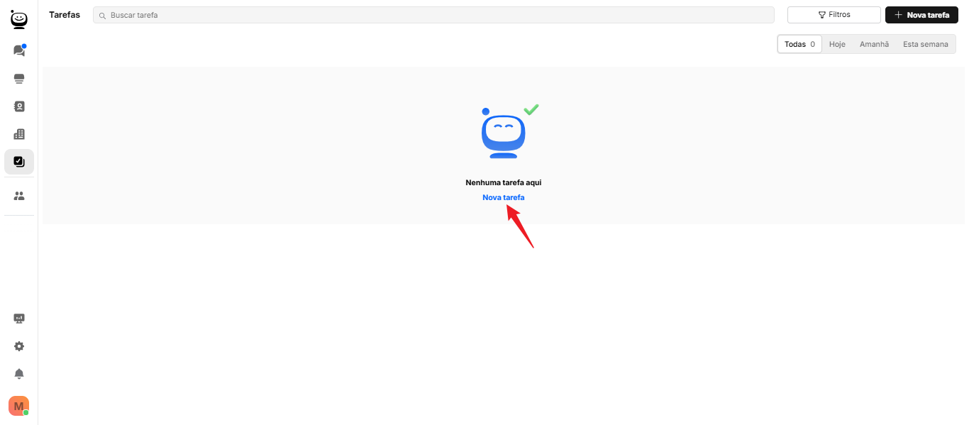 Passo 2: No centro da tela, clique no em “Nova Tarefa” e um novo menu será exibido