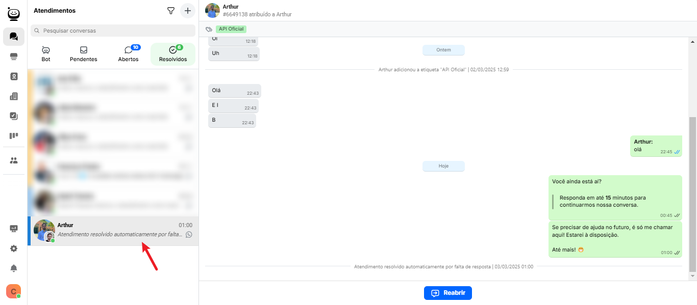 Passo 1: Acesse a aba "Atendimentos" e selecione a conversa desejada