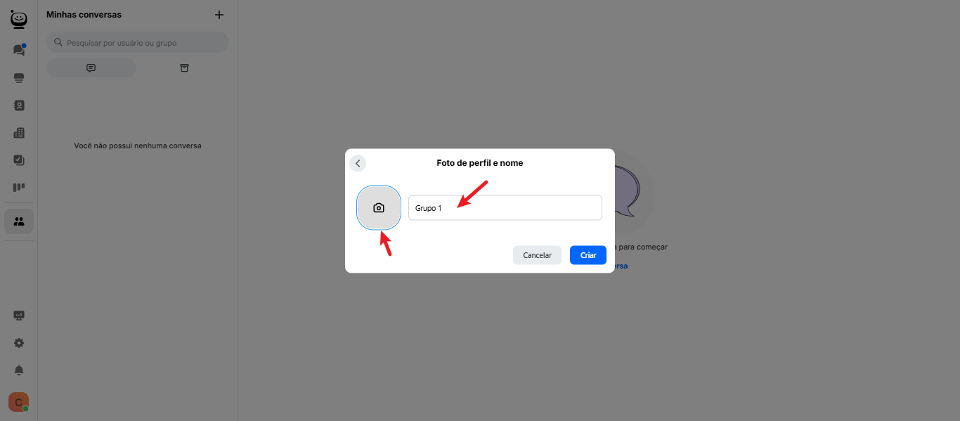 Passo 5: Aqui, você pode nomear e adicionar uma foto para identificar o grupo