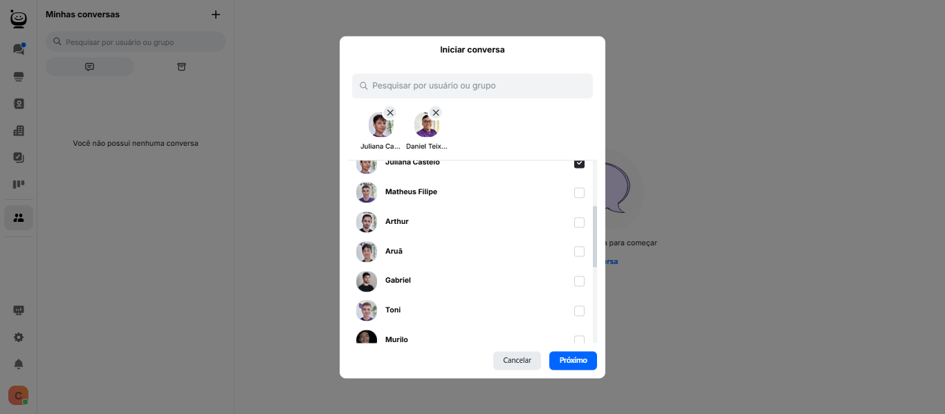 Passo 3: Escolha os usuários da equipe que você deseja adicionar ao grupo