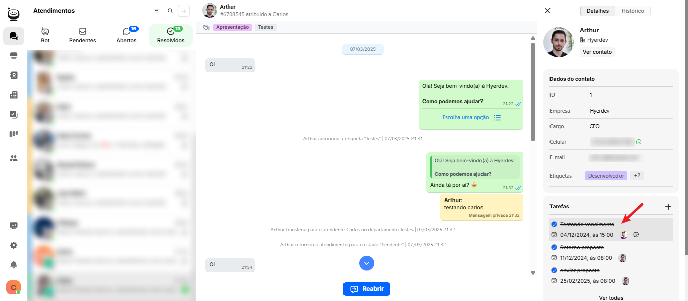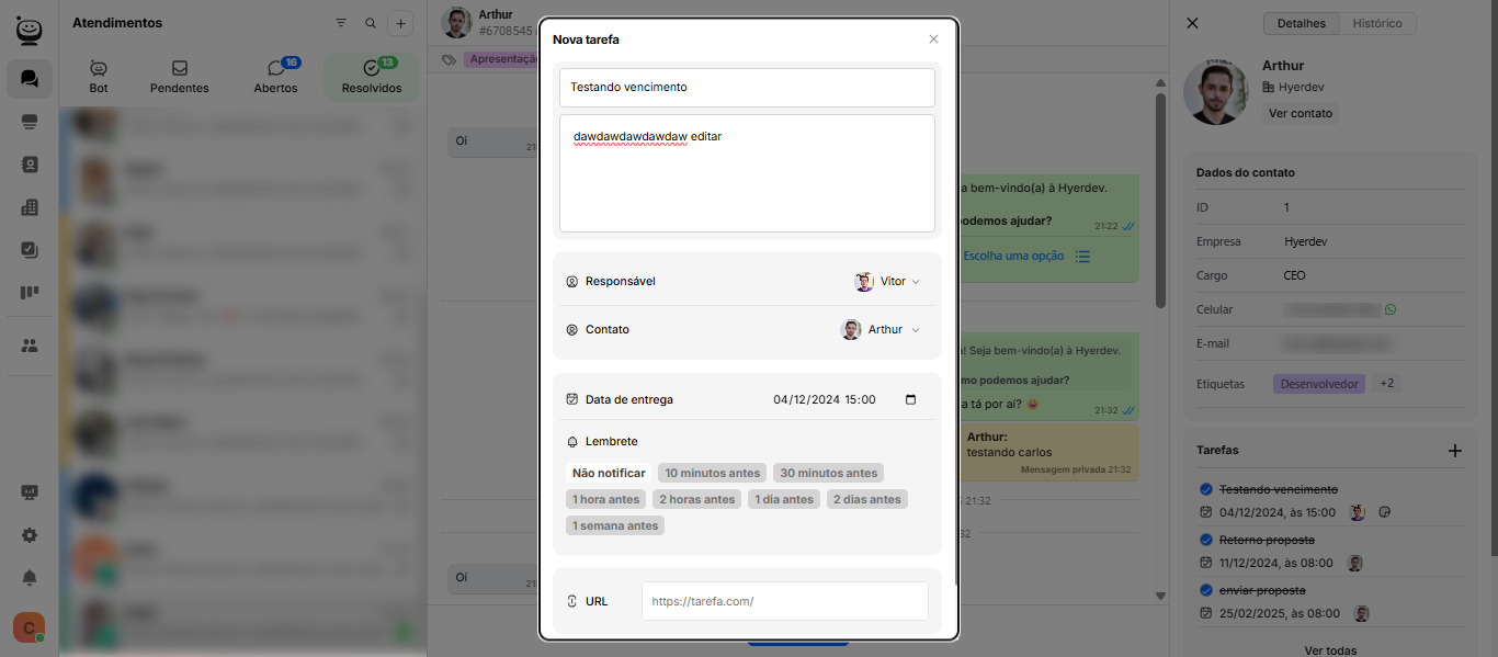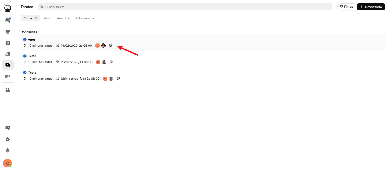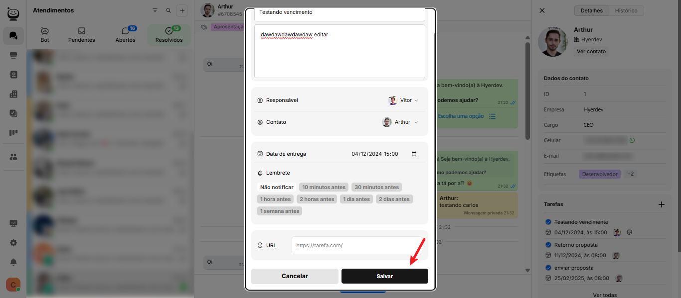 Você também pode editar tarefas a partir da aba de atendimentos.