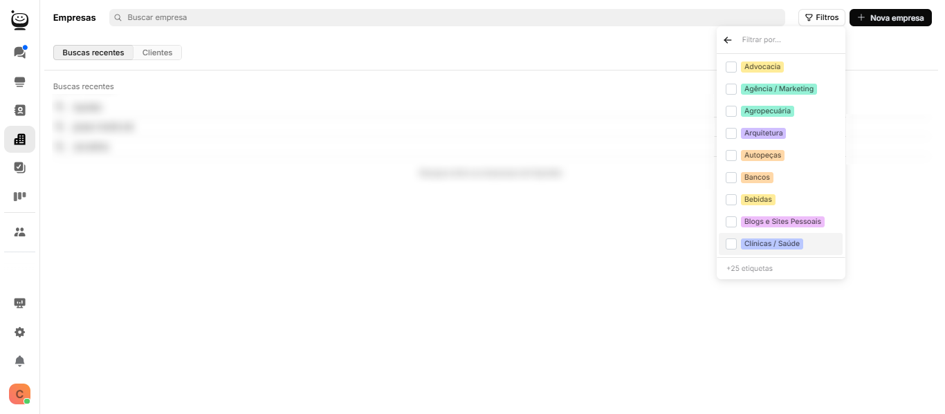 Para melhor gestão, utilize os segmentos para categorizar todas as empresas adicionadas. Assim fica mais fácil visualizar, organizar e filtrar as informações conforme a necessidade.