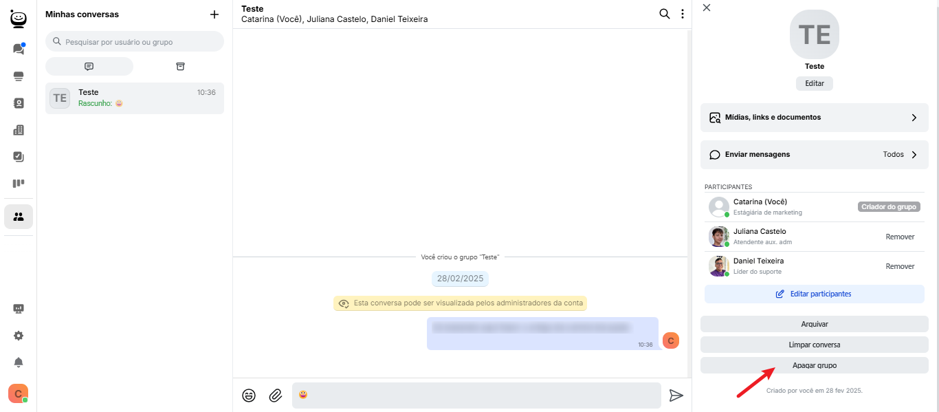 Passo 5: Confirme a ação para prosseguir com a exclusão do grupo