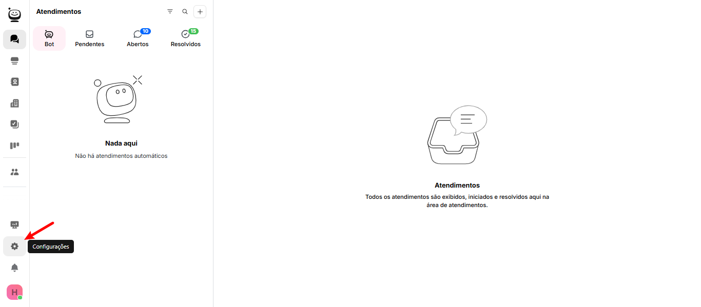Passo 1: No menu principal do Sacflow, clique no ícone de engrenagem, que representa a seção de “Configurações”