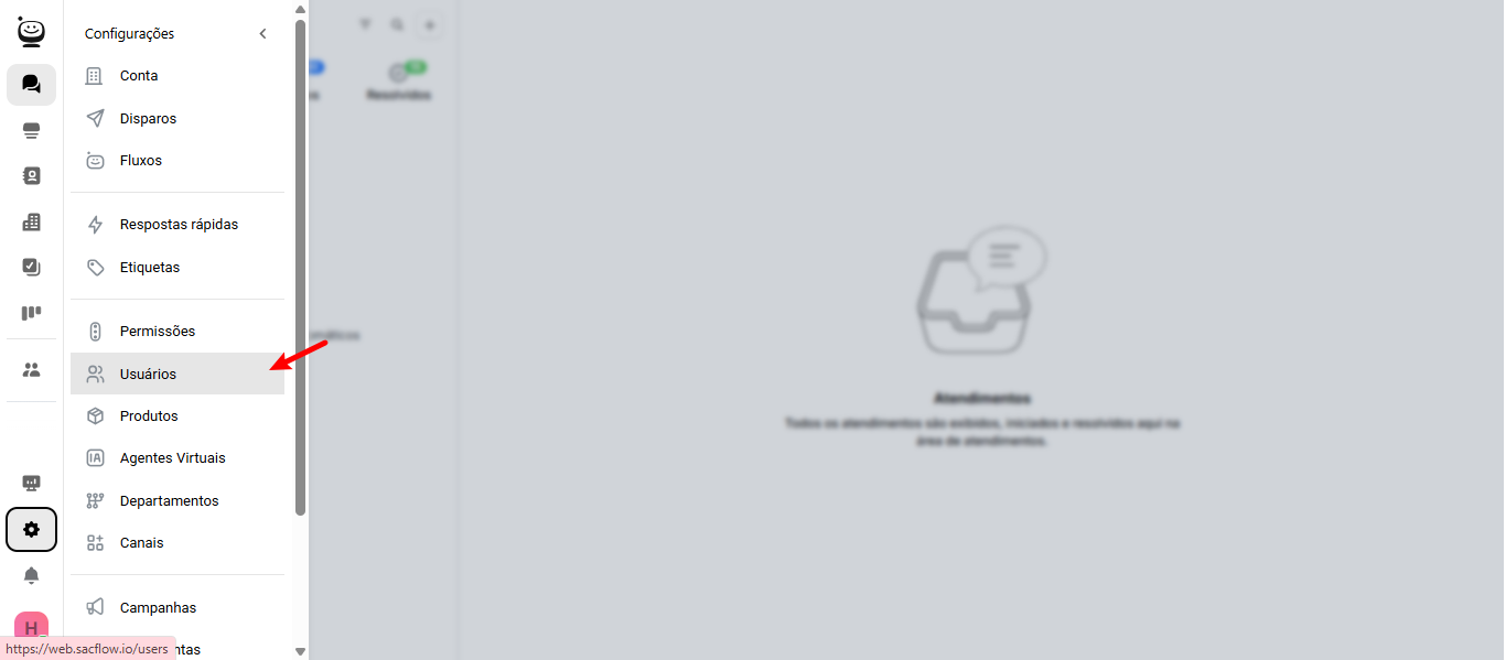 Passo 2: No menu de configurações, clique na opção "Usuários"