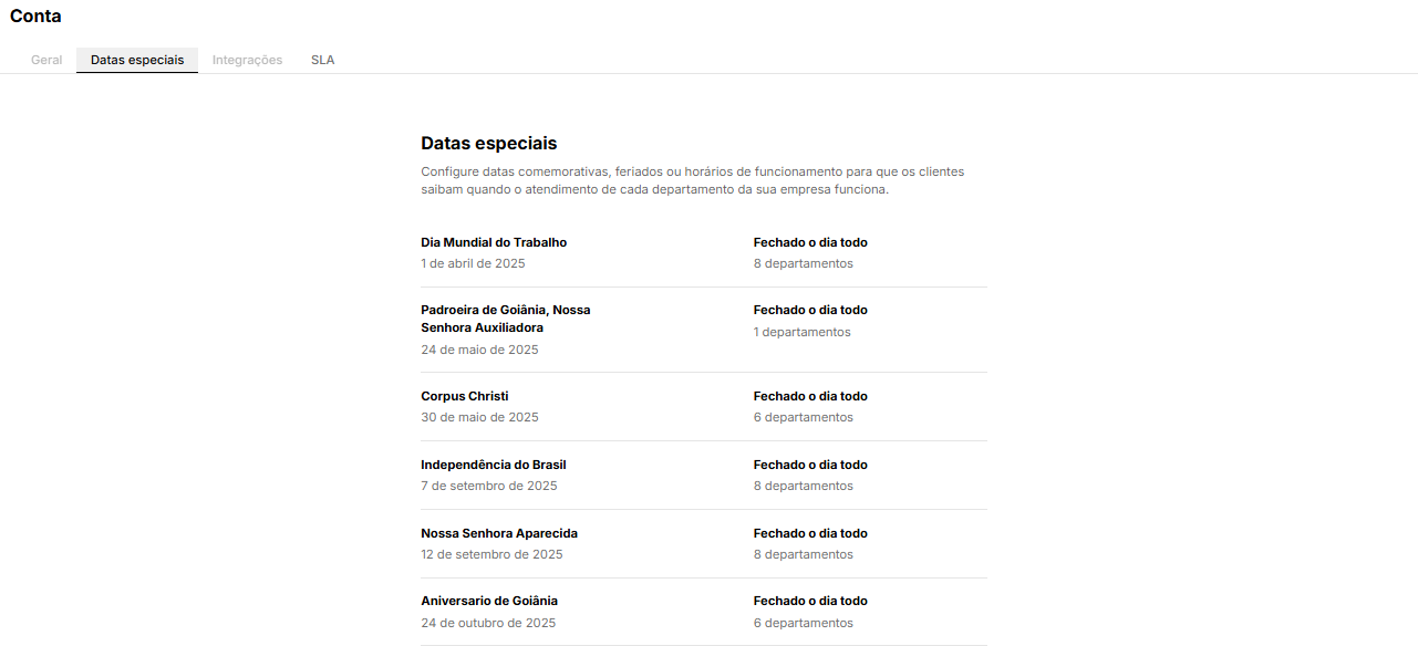 • A distribuição automática de atendimentos fica em pausa até que a data especial definida termine.