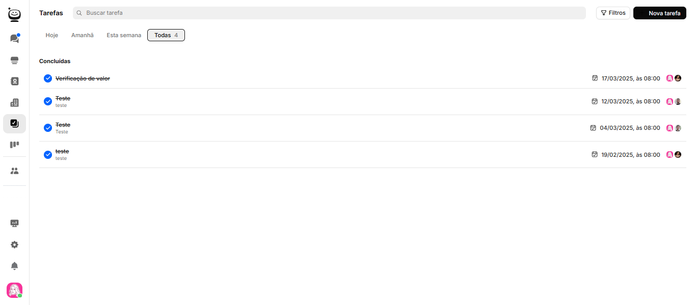 • Gerenciar pendências: Crie tarefas para lembrar de retornos, ajustes ou qualquer outra ação necessária.