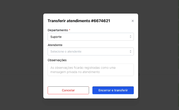 Caso a solicitação possa ser resolvida por você, siga com o atendimento até a finalização. Se for necessário repassar para outro setor, use a função de transferência para garantir que o cliente seja atendido por quem pode resolver.