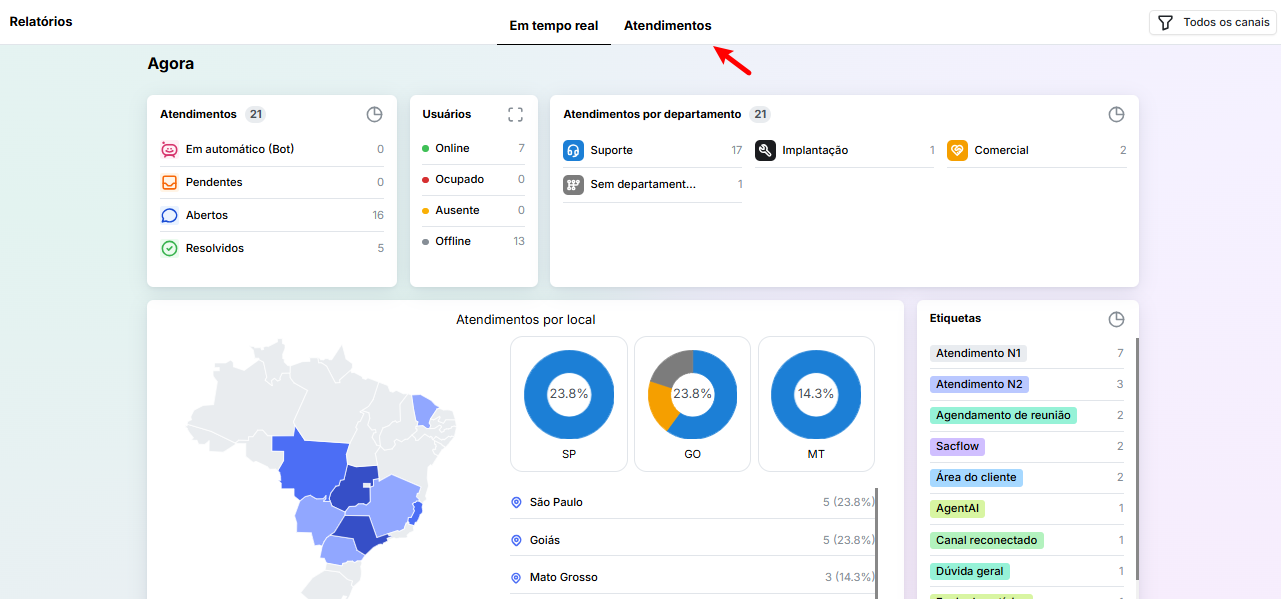 Pronto! Agora você pode acompanhar todos os dados relevantes do seu atendimento em um só lugar. Para mais informações sobre cada métrica clique aqui!