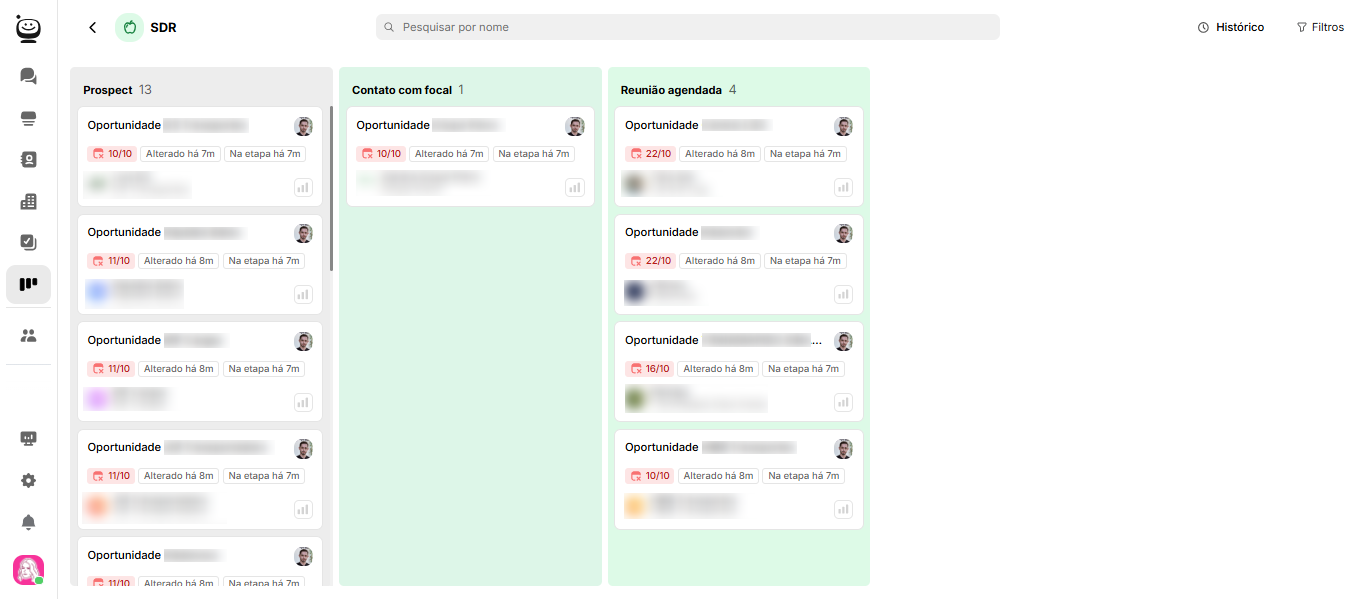 Ao visualizar os funis, você consegue entender em que estágio está cada oportunidade, identificar gargalos e agir de forma estratégica para melhorar seus resultados.