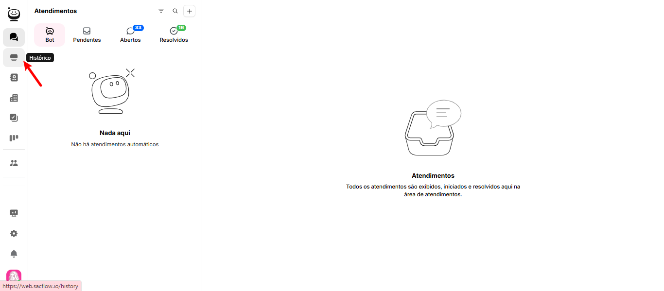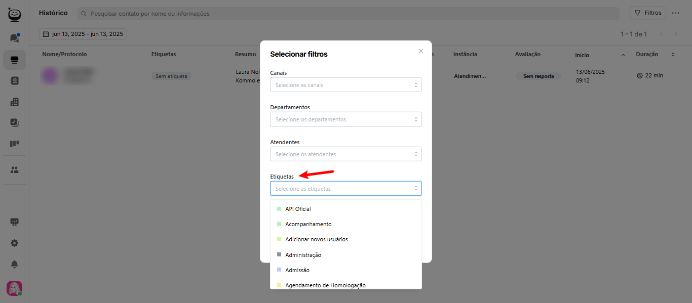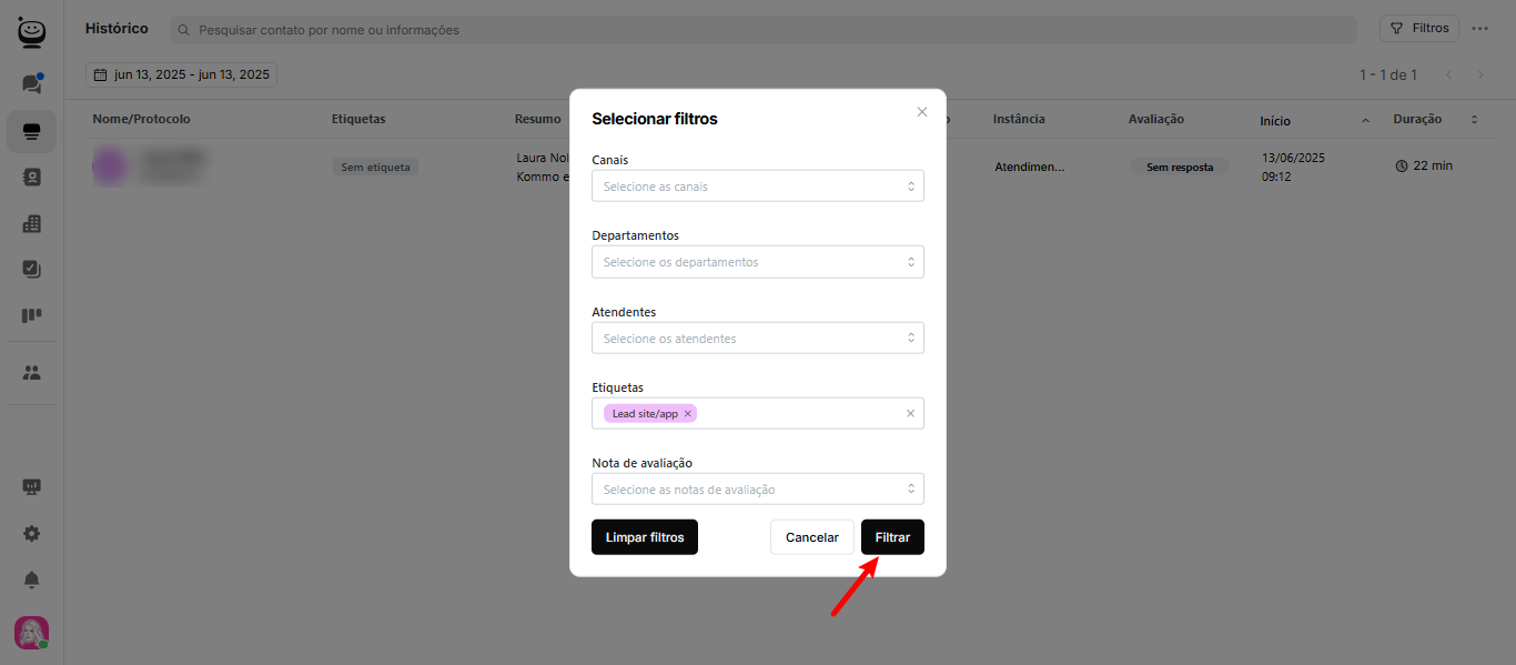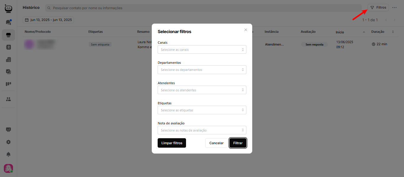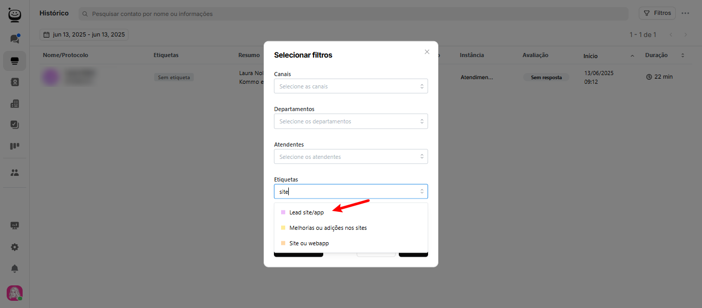 Se você quer identificar quais clientes chegaram até você por meio de uma campanha no site, a plataforma oferece filtros que facilitam essa visualização dentro do Histórico de atendimentos.