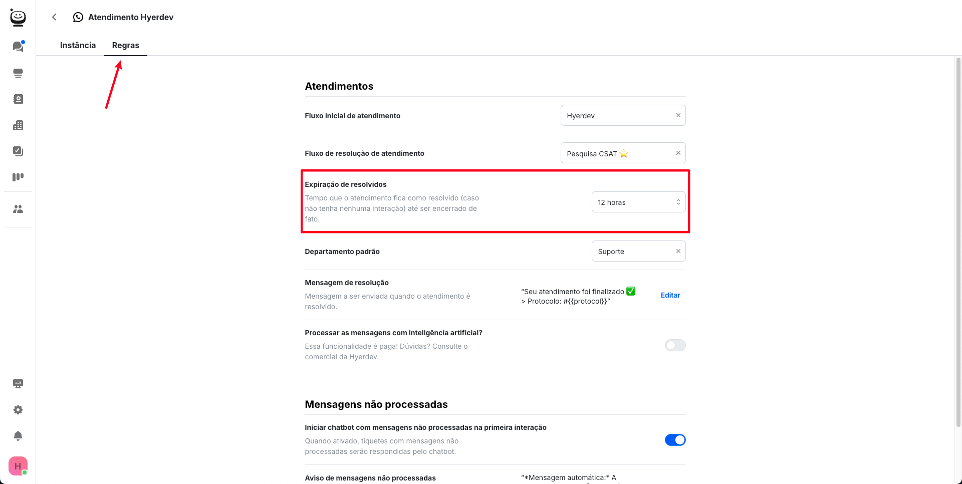 Configuração do tempo para um atendimento resolvido ser encerrado