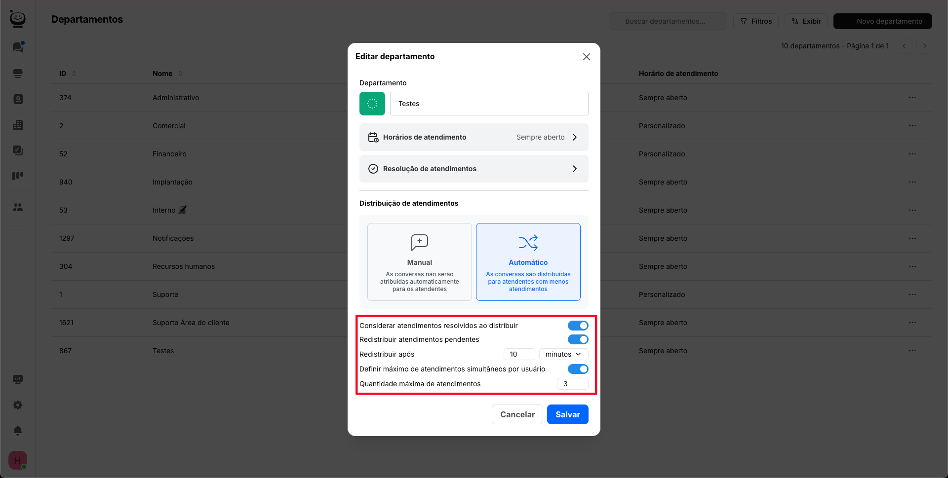 Distribuição automática de atendimentos