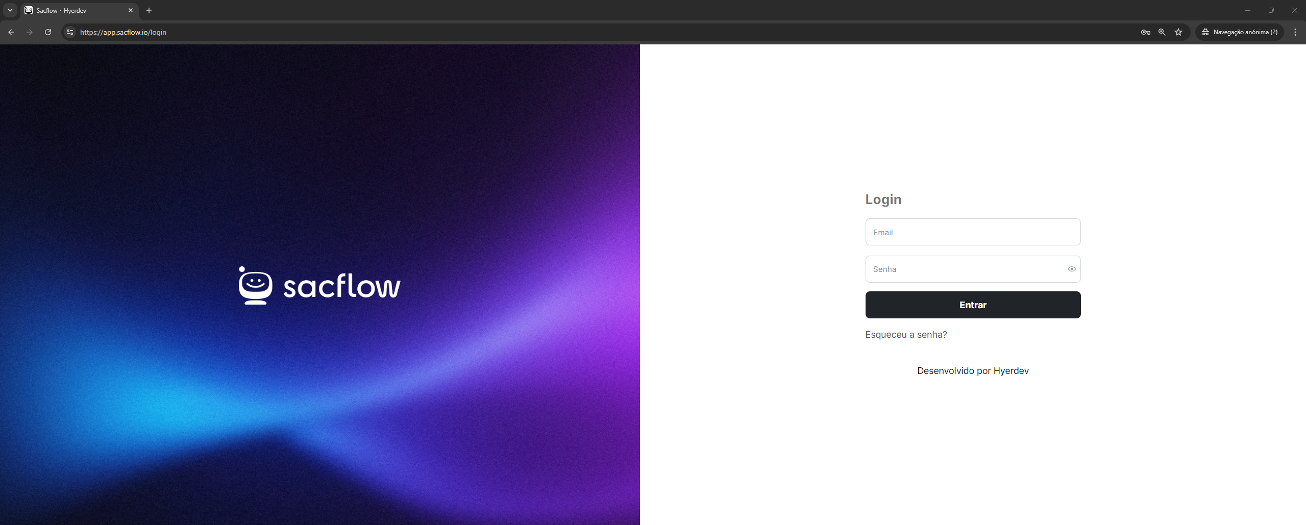 - Navegue até o site do Sacflow. atráves do link https://app.sacflow.io/login
